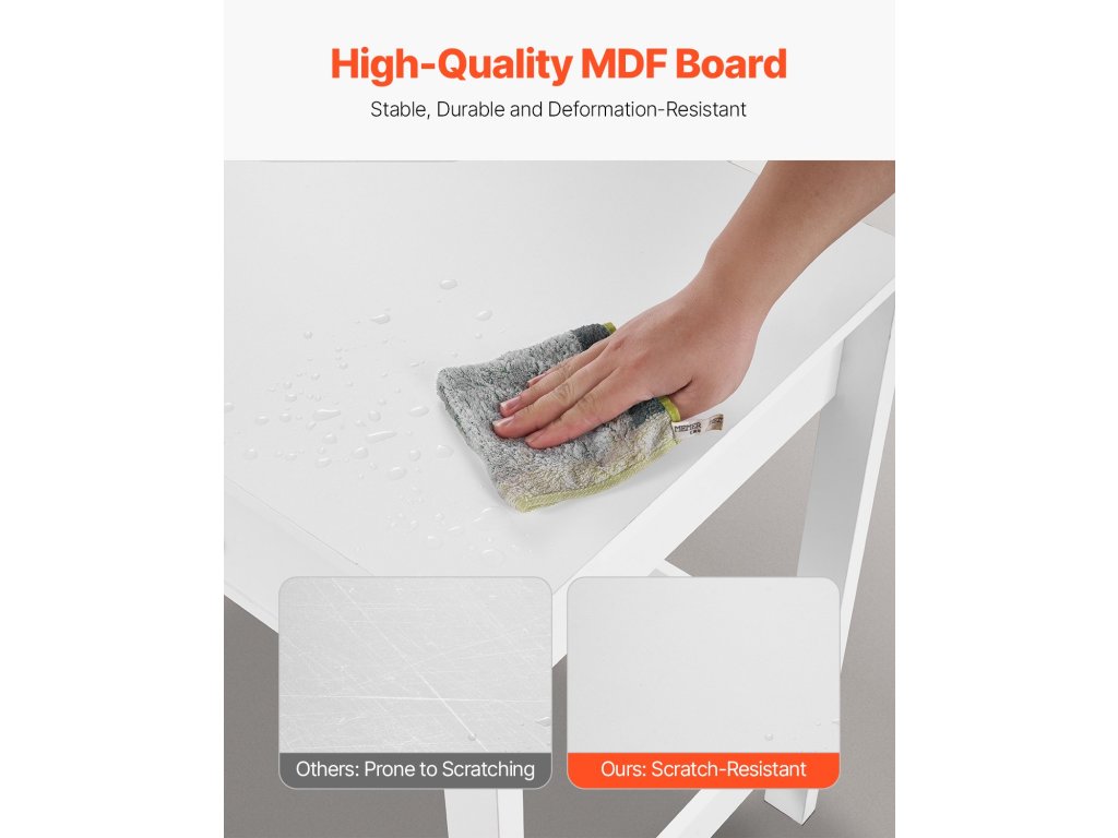 Ez az íróasztal MDF-ből készült, és ellenáll a vetemedésnek és a kopásnak, így ideális választás hosszú távú használatra.