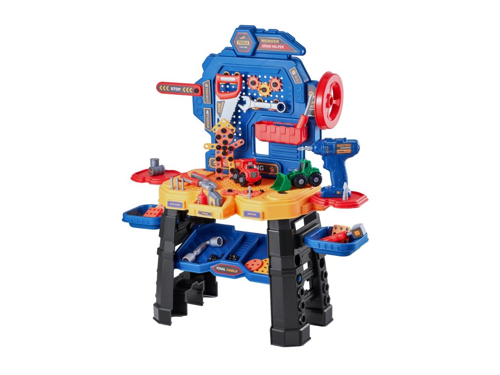 Gyerek munkapad 181 darabos valósághű szerszámokkal és fúróval 3+