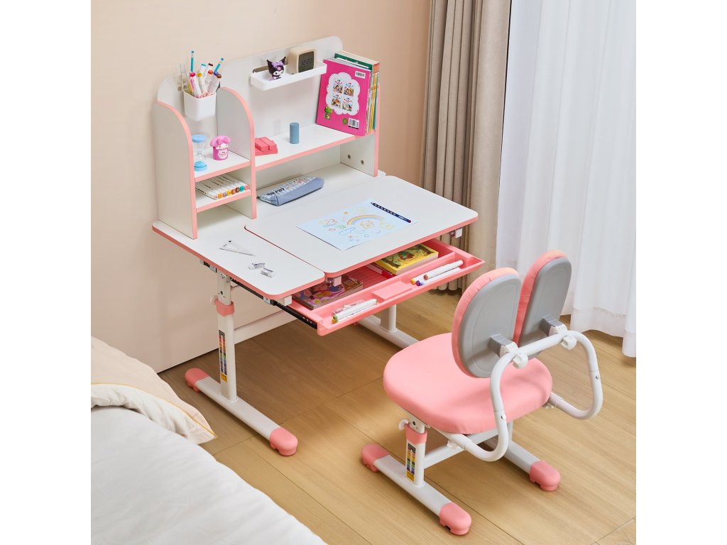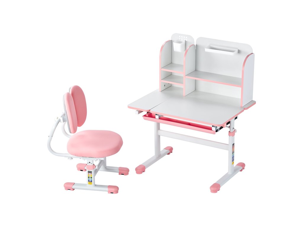 Gyerekasztal és szék, magasságban állítható, asztallap 0–40°, rózsaszín