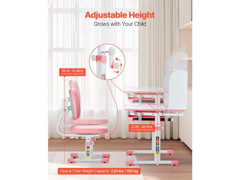 A gyermek tanulóasztal és a szék állítható magasságú funkcióval rendelkezik, amely tökéletesen megfelel az ergonómiai elveknek. Segít a helyes testtartás kialakításában már egészen kicsi kortól kezdve, és védi gyermeke gerincének egészségét a növekedés során.