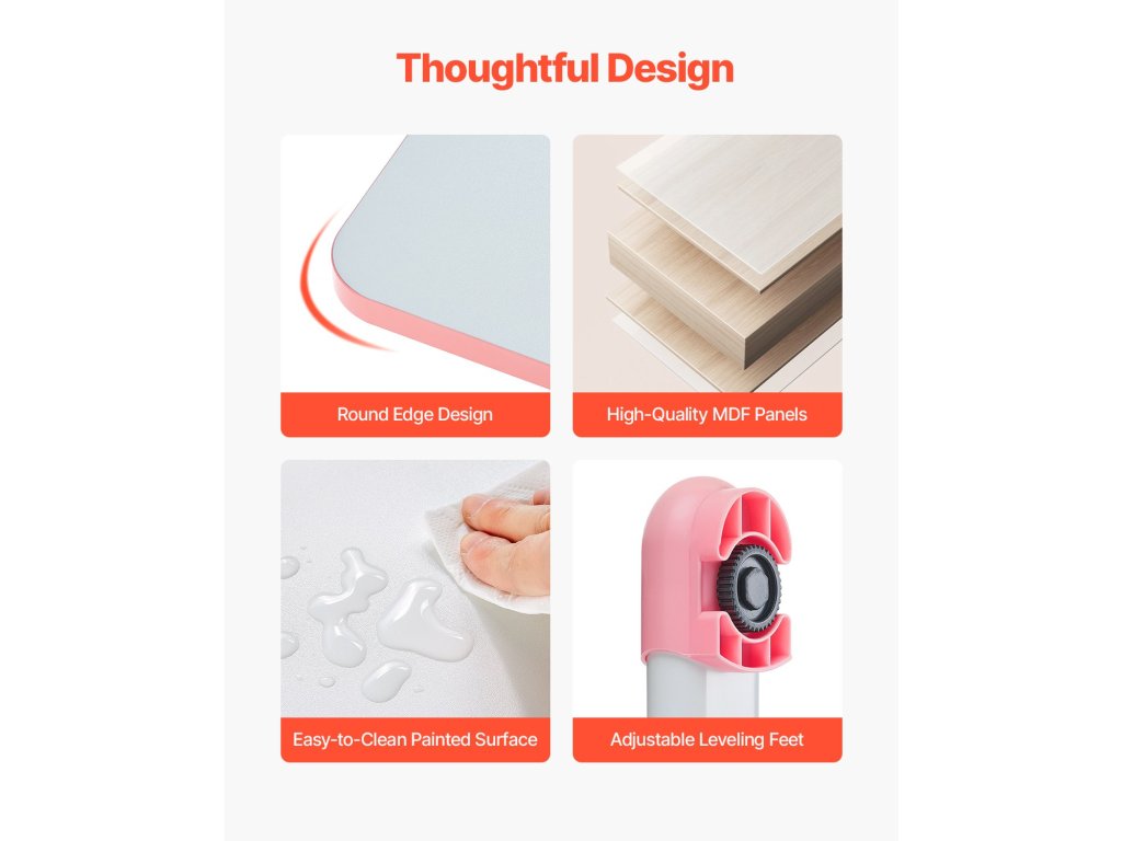 A gyermekek növekedését szem előtt tartva tervezett tanulóasztal és székkészlet kiváló minőségű MDF-lapokból és stabil acélvázból készült. Ez a kombináció hosszú távú stabilitást és tartósságot biztosít, akár tanul, akár játszik gyermeke.