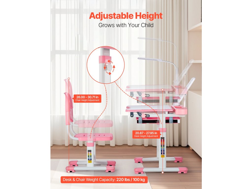 A gyermek tanulóasztal és székkészlet állítható magasságú funkcióval rendelkezik, amely tökéletesen megfelel az ergonómiai elveknek. Segít a helyes testtartási szokások korai életkortól történő ápolásában, és védi gyermeke gerincének egészségét felnőttkorban.