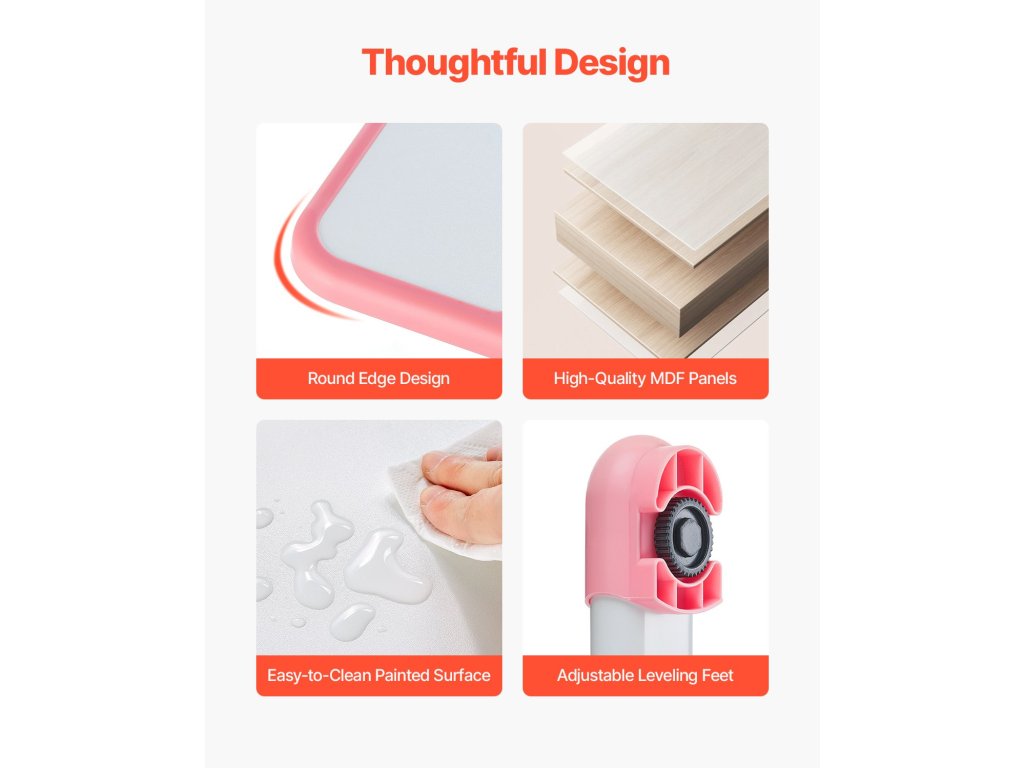 A gyermekek növekedését szem előtt tartva tervezett tanulóasztal és székkészlet kiváló minőségű MDF-lapokból és stabil acélvázból készült. Ez a kombináció hosszú távú stabilitást és tartósságot biztosít, akár tanul vagy játszik gyermeke.
