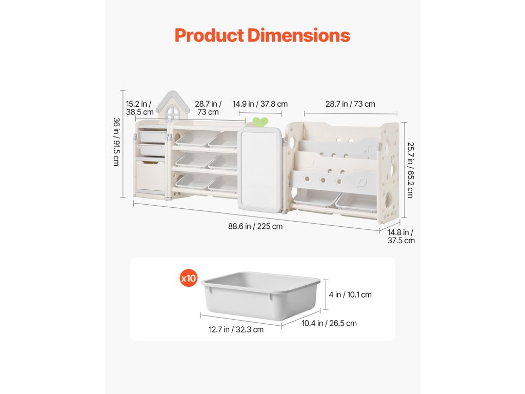 Ez a gyerekeknek szánt játékszervező tökéletes megoldás a játékok, könyvek, íróeszközök, blokkok és sok más tárolására. Szórakoztató és magával ragadó kialakításával segíti a gyermekeket az önálló felfedezési készségek és a rendszerezés folyamatának fejlesztésében, miközben a rendezett tér kialakításához szükséges jó szokásokra ösztönöz.