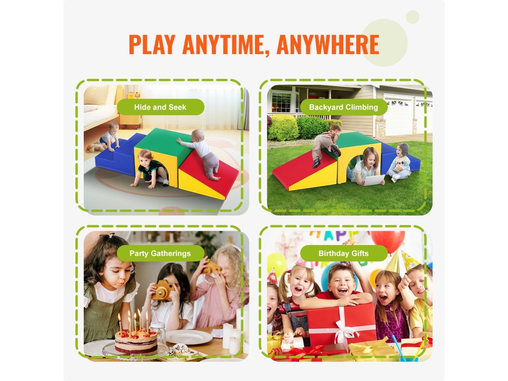 Ez a habszivacs mászóalagút tartós anyagokból készült, így ellenáll a sérüléseknek, és megfelel a gyermekbiztonsági tanúsítványoknak. Tágas beltéri területet biztosít a gyerekeknek a mászásra, kergetőzésre, és még egy csúszdát is tartalmaz a még nagyobb szórakozás érdekében, lehetővé téve a gyerekek csendes játékát.
