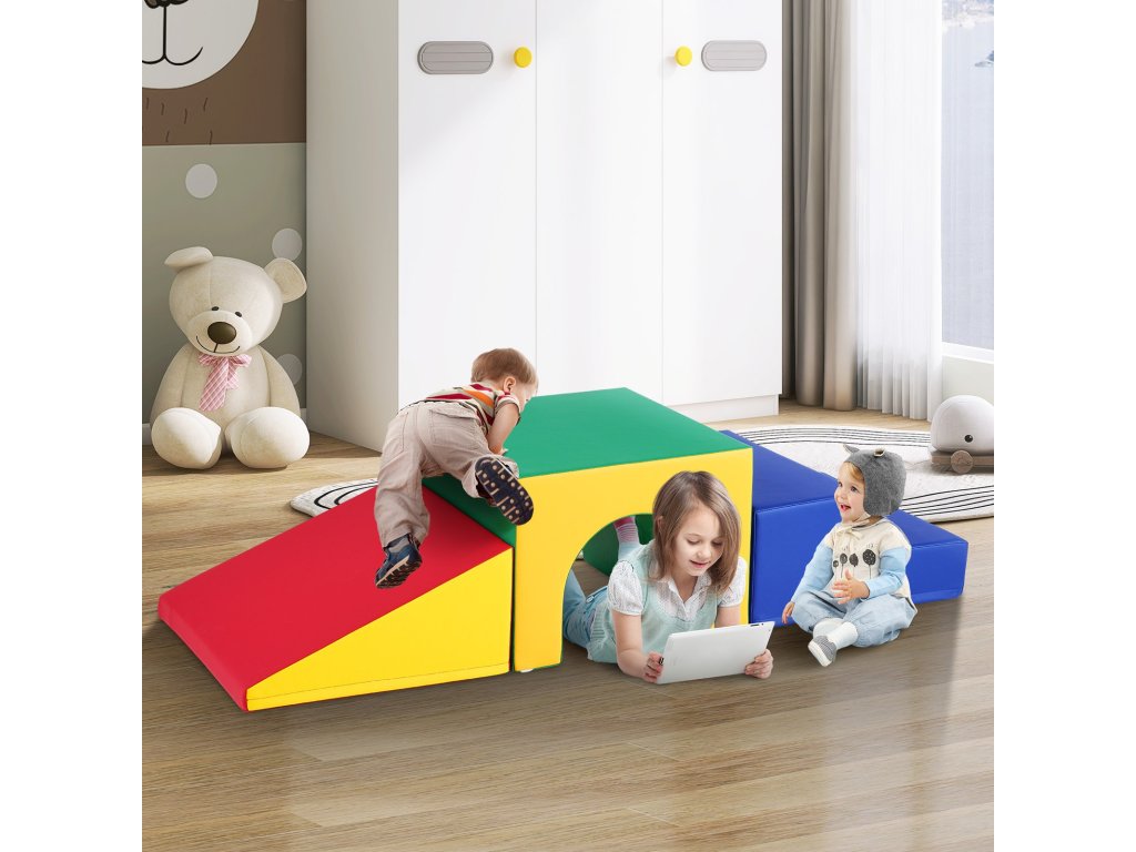 Gyermek alagút mászókészlet habszivacs blokkokkal (3 db), rámpával és lépcsővel