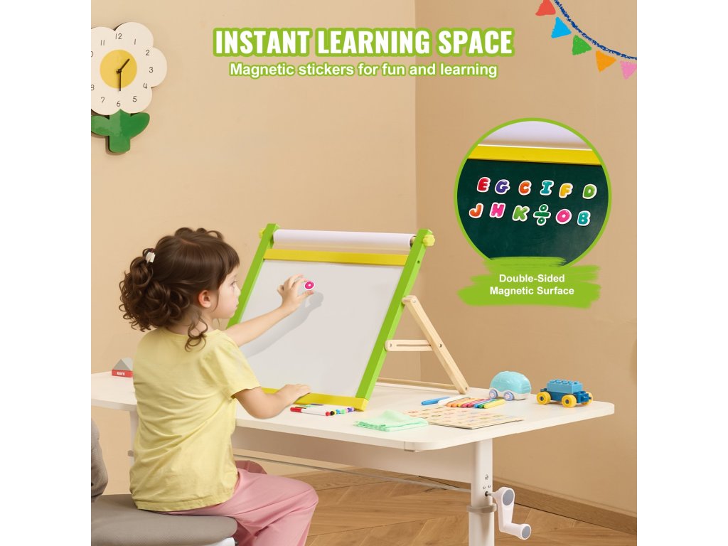 Ez a gyermekrajzos festőállvány lehetővé teszi gyermeke számára, hogy válasszon a kréta és a tábla között, így kedvenc felületével ösztönözve kreativitását. A megfordítható kialakítás két rajzolási lehetőséget helyez el egyetlen helytakarékos festőállványban, így kiváló választás otthoni és iskolai környezetben egyaránt.