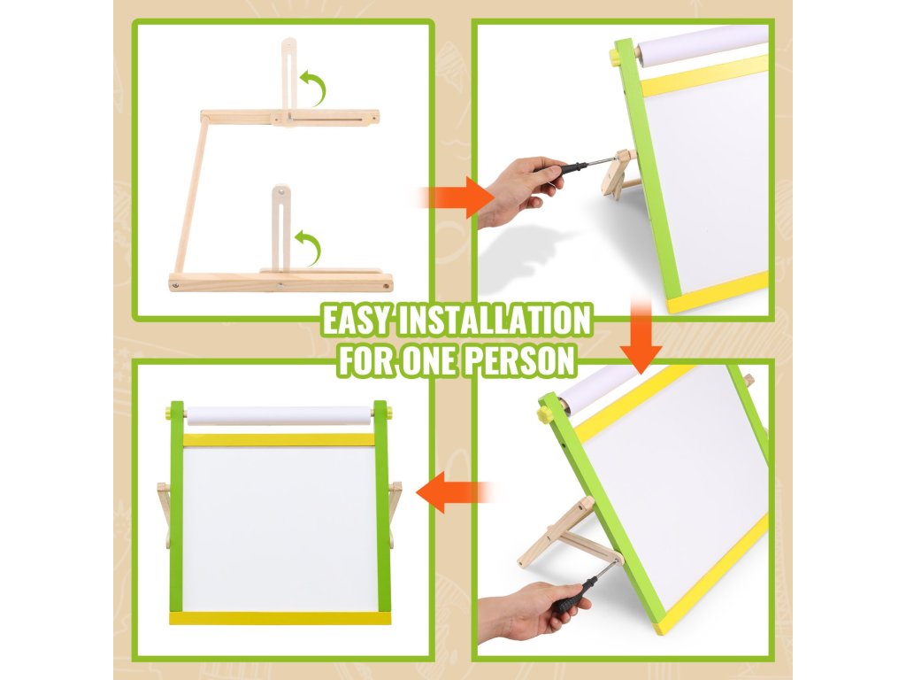 Akár az asztalon, a padlón, a kanapén vagy akár a szabadban, ez a festőállvány lehetővé teszi, hogy Ön és gyermeke bármilyen környezetben együtt alkossanak. Ez egy szórakoztató módja annak, hogy feldobjátok a mindennapokat és minőségi családi időt töltsetek el.