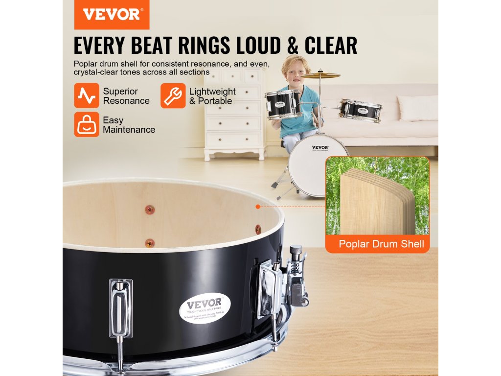 A gyerekeknek szánt dobkészletünk olyan rezonáló hangokat kínál, amelyek túlmutatnak a műanyag dobokon. Dobhéjaink prémium minőségű nyárfából készültek, ami mélységet és gazdagságot kölcsönöz a hangzásnak. Ráadásul a vastag PET dobfej a folyamatos játék és a gyakori használat viszontagságait is kibírja anélkül, hogy egy ütemet is kihagyna.