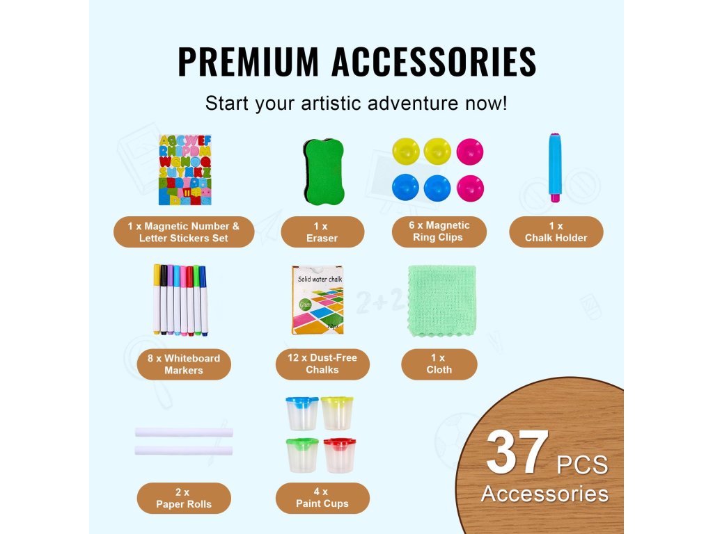 Ez a gyermek művészeti festőállvány lehetővé teszi, hogy két gyermek együtt alkosson, így helyet takarít meg és csökkenti a költségeket! Ráadásul többféle rajz- és írófelületet biztosít, hogy a kreativitás igazán felpezsdüljön.