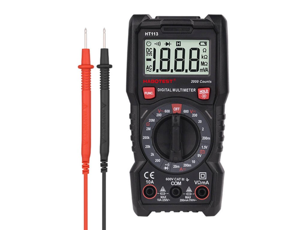 A Habotest HT113 digitális multifunkciós multiméter számos funkciót kínál, és ideális egyen- és váltakozó feszültség, egyenáram vagy ellenállás mérésére, emellett képes diódák tesztelésére és folytonossági mérésre is. A speciális gombok segítségével kényelmesen válthat a funkciók között, míg a könnyen leolvasható kijelzőn a szükséges eredményekhez férhet hozzá.