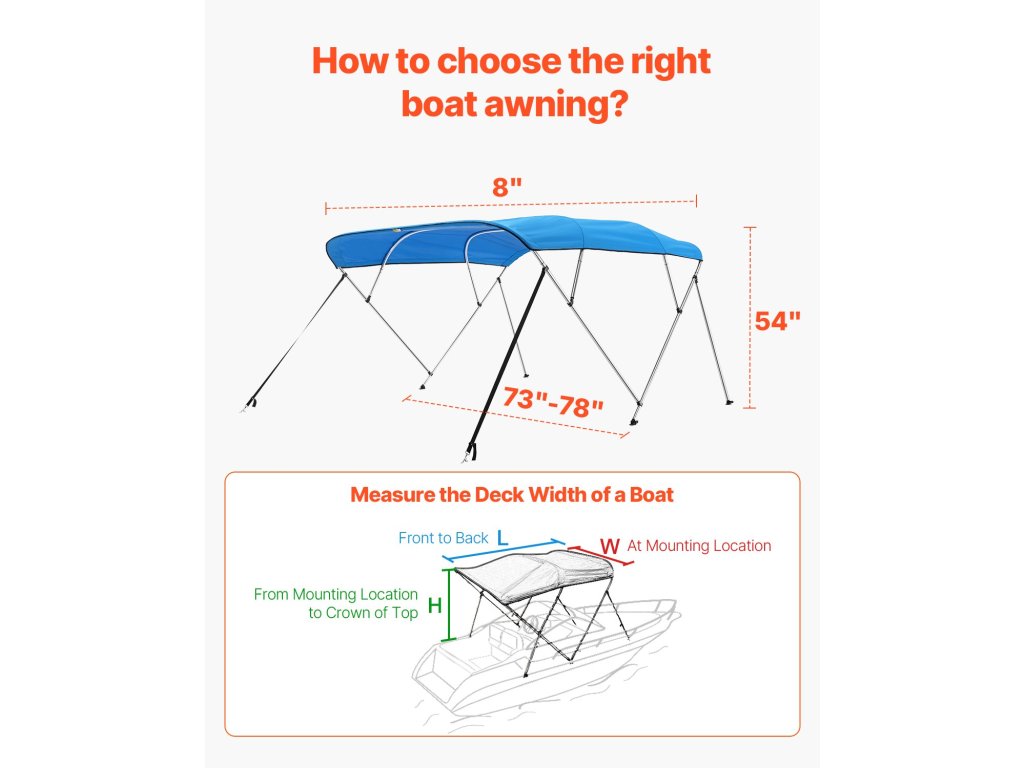 Hajóbimini 600D poliészter alumínium kerettel 96"H × (73"-78")SZ × 54"M