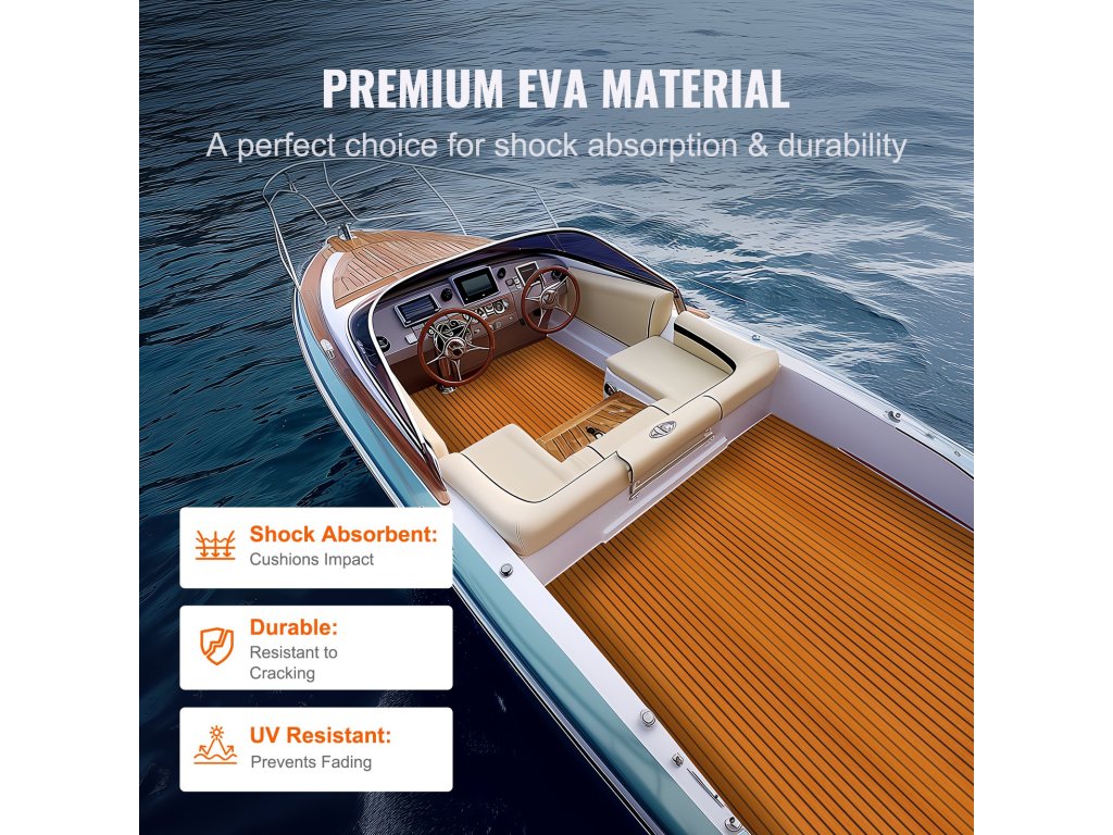 Az erős 3M ragasztóval ellátott és csúszásgátló, ütéscsillapító EVA anyagból készült hajópadló átfogó padlóvédelmet nyújt. Könnyen alkalmazkodik a különböző helyszínekhez, ideális a tengeri élethez.