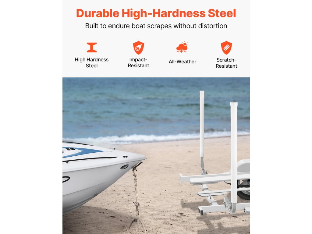 Ez a magas PVC oszlop kialakítású pótkocsivezető oszlop biztosítja a közeledő járművek jó láthatóságát. Az érintkezési pontokon lévő PVC-védelem segít minimalizálni a csónak felületén keletkező karcolásokat, valamint elnyeli az ütéseket, így a csónak rakodása zökkenőmentesebbé és hatékonyabbá válik.