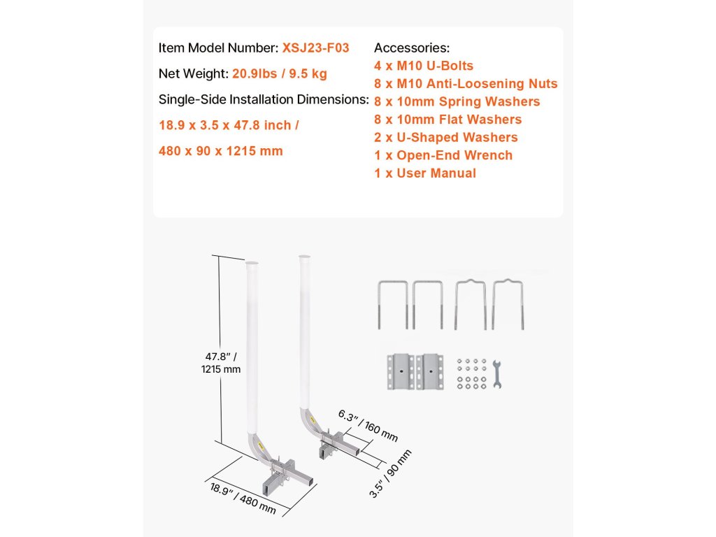 A VEVOR csónak utánfutó rúdsor készlet két rögzítési lehetőséggel rendelkezik, állítható U-csavarokkal, hogy illeszkedjen a különböző szélességű utánfutógerendákhoz. Ez a kialakítás biztosítja a biztonságos és stabil felszerelést, megakadályozva, hogy a vezető rudak meglazuljanak vagy meginogjanak szállítás közben.
