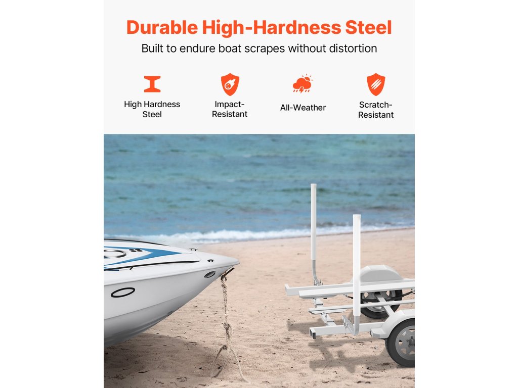 Ez a magas PVC oszlop kialakítású pótkocsivezető oszlop biztosítja a közeledő járművek jó láthatóságát. Az érintkezési pontokon lévő PVC-védelem segít minimalizálni a csónak felületén keletkező karcolásokat, valamint elnyeli az ütéseket, így a csónak rakodása zökkenőmentesebbé és hatékonyabbá válik.