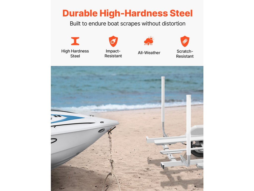Ez a magas PVC oszlop kialakítású pótkocsivezető oszlop biztosítja a közeledő járművek jó láthatóságát. Az érintkezési pontokon lévő PVC-védelem segít minimalizálni a csónak felületén keletkező karcolásokat, valamint elnyeli az ütéseket, így a csónak rakodása zökkenőmentesebbé és hatékonyabbá válik.