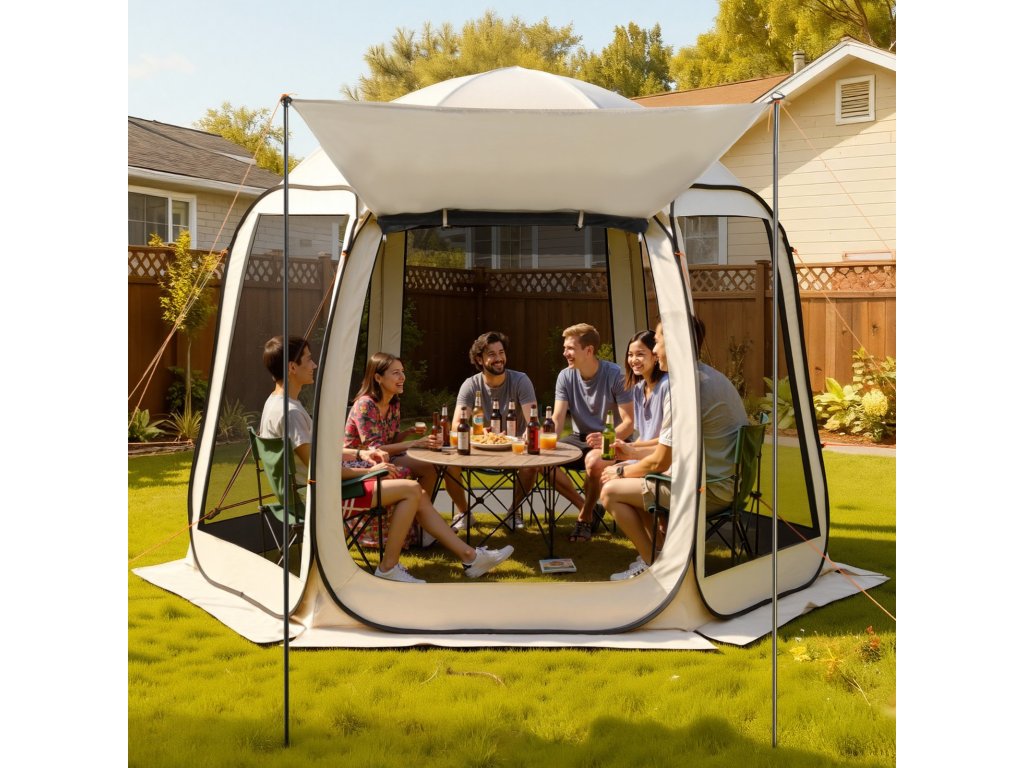 Hálósátor 4-8 fő részére 3030×2650×2300 mm napellenzővel és teraszfedéssel