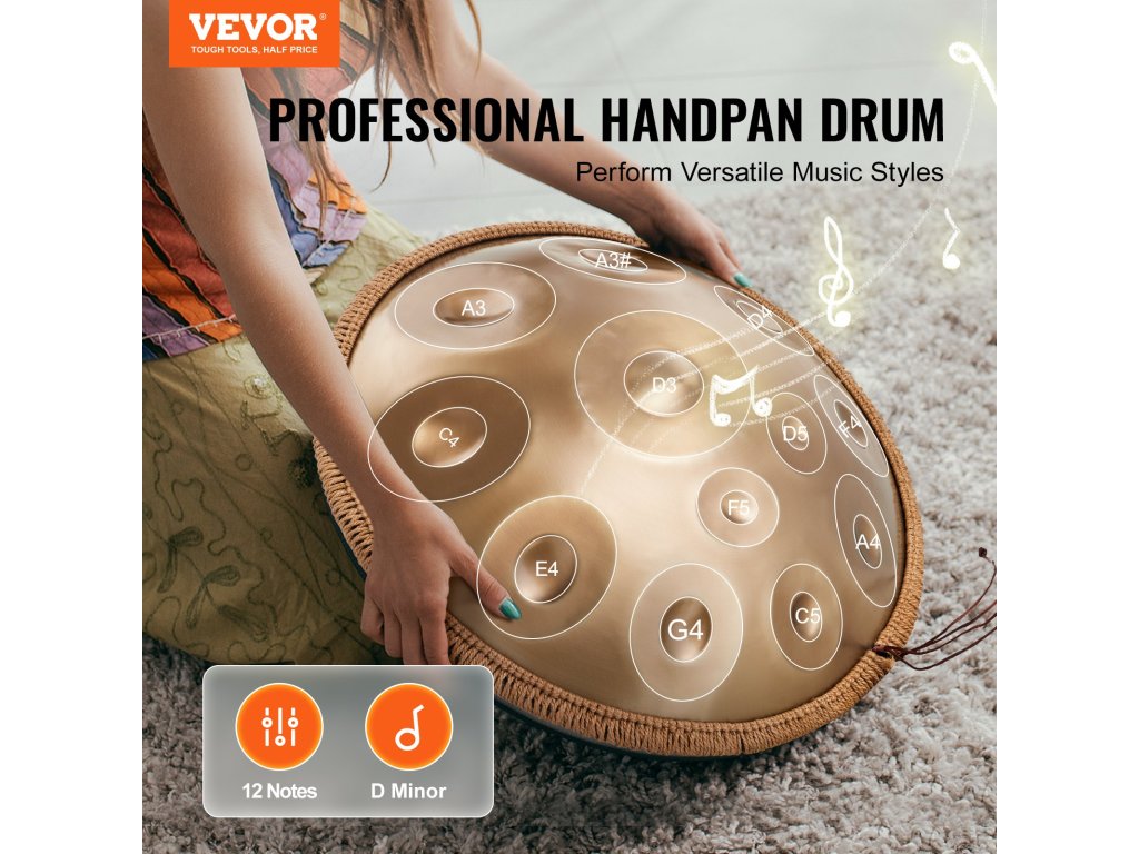 VEVOR 22 hüvelykes kézi dob d-moll 12 hangú