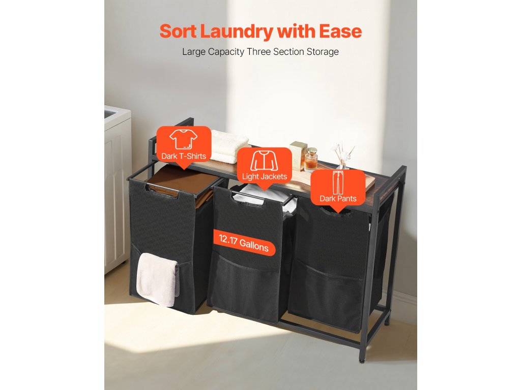 Két 36,51 gallonos rekesz tartós, vízálló és rugalmas anyagból - tökéletes a világos/fekete, nedves/száraz vagy felnőtt/gyerek ruhák szétválogatására, hogy otthonod tiszta és rendezett maradjon.
