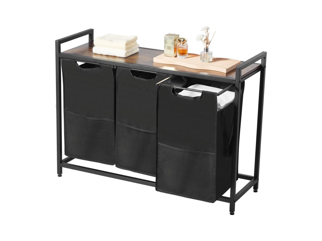 Háromrészes szennyesválogató, fém váz, fa tetejű, 3 db 600D zsák