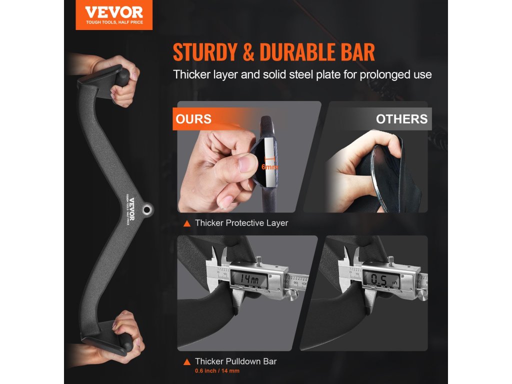 Vastag gumibevonatú konstrukcióval és erős acéllemezzel ellátott, a lat pulldown rögzítőnk még a legintenzívebb edzéseket is kibírja hajlítás vagy repedés nélkül.