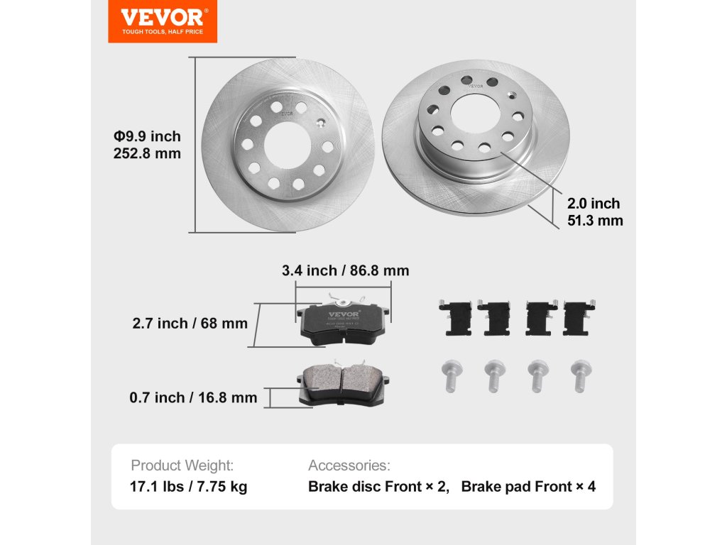 | Fékbetét mérete | 3.4 × 2,7 × 0,7 hüvelyk/86,8 × 68 × 16,8 mm |