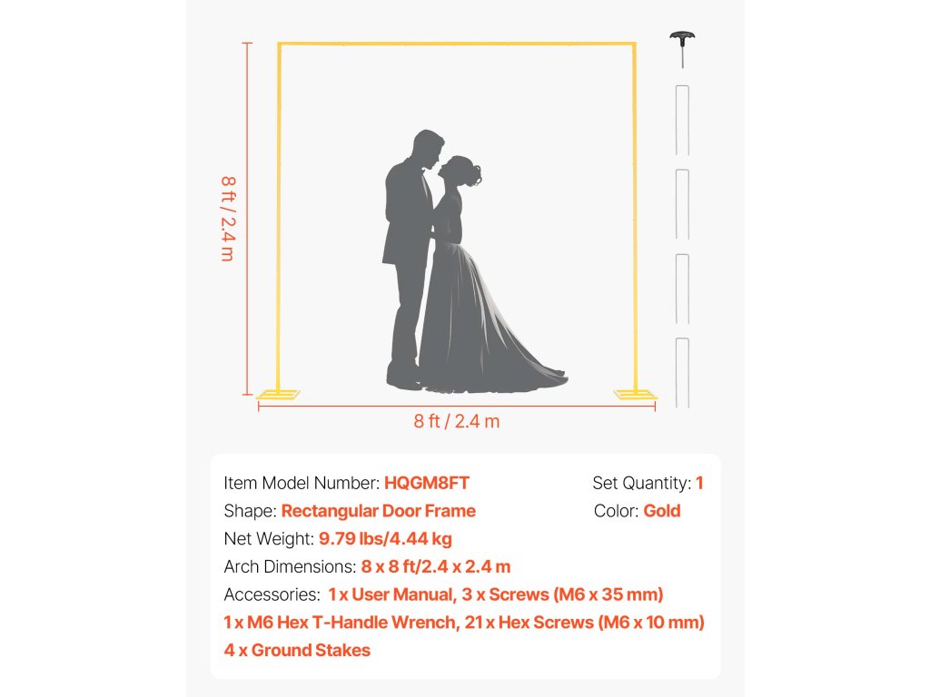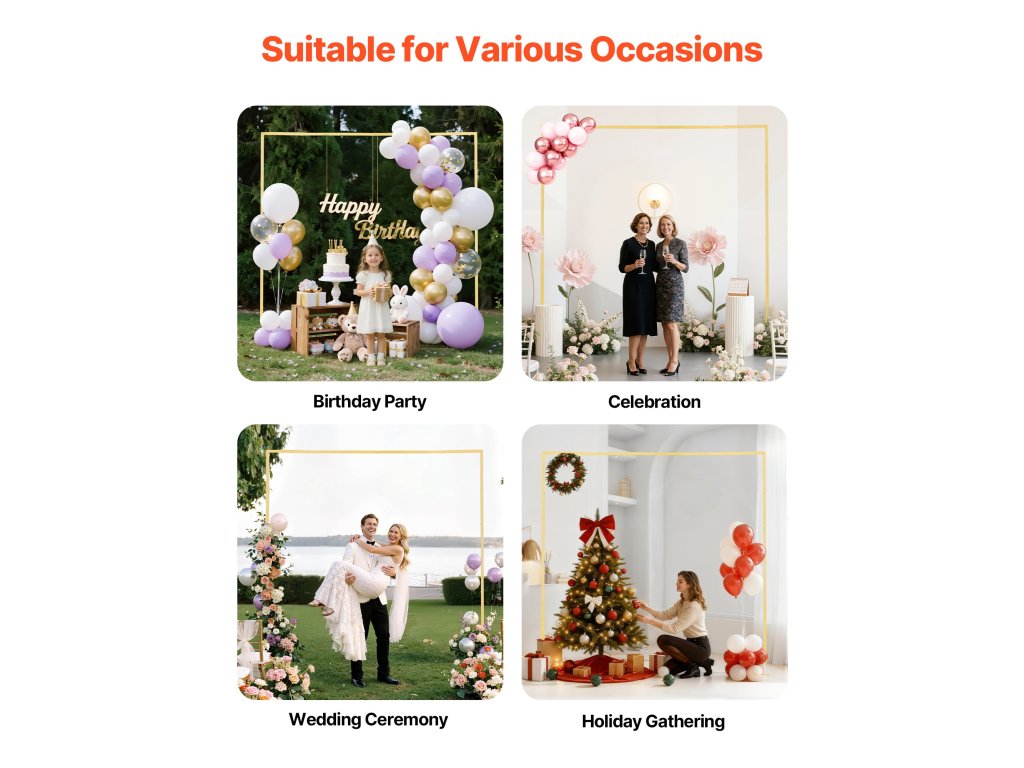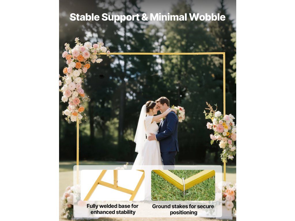 Ideális esküvőkre, partikra, fesztiválokra vagy üzletnyitókra, ez a fém íves állvány vizuálisan vonzóvá és hangulatossá tesz minden alkalmat, elegánsabbá és figyelemfelkeltőbbé téve az eseményt.