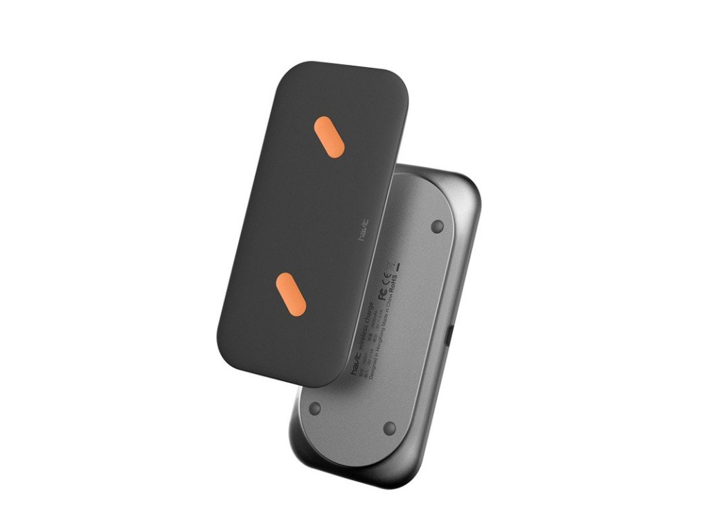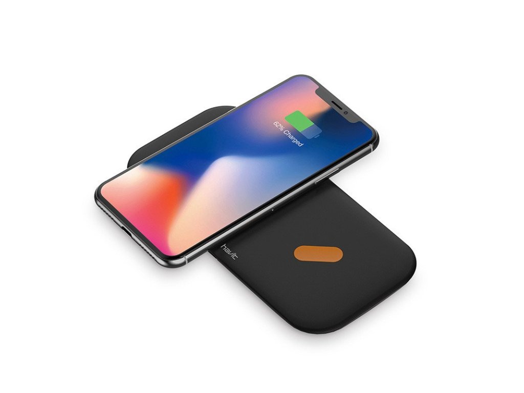 A Havit H340 induktív töltő lehetővé teszi két eszköz egyidejű vezeték nélküli töltését. A csúszásmentes felület megakadályozza az okostelefonok mozgását .