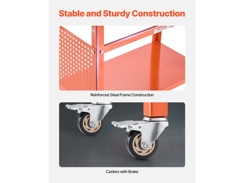 Ez a mozgatható hegesztőasztal 4 simán forgó görgővel van felszerelve, amelyek közül 2 fékkel rendelkezik a biztonságos parkolás és a véletlen elcsúszás megakadályozása érdekében. Kivételes stabilitást és mobilitást biztosít, akár a műhelyben, akár a helyszínen.