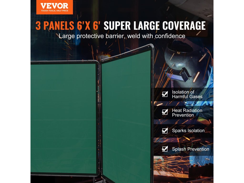 Készen áll arra, hogy a hegesztés biztonságát a következő szintre emelje? Ne keressen tovább! A VEVOR 3 paneles 6 x 6 FT hegesztési kötény kerettel itt van, hogy kiváló lángállóságot, 6 fokozatú UV-védelmet, stabil keretet és 12 görgőt kínáljon, amelyek 360°-ban forgathatók, így tökéletes társ a biztonságos munkaterülethez.