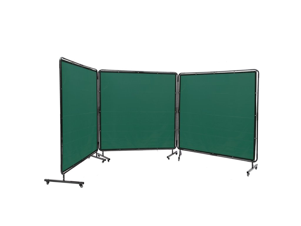 Hegesztőernyő 182,9 × 182,9 cm, 3 paneles, nem gyúlékony vinil, 12 kerékkel