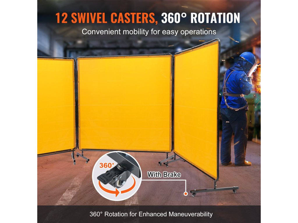 A 12 forgó görgővel ellátott kialakításnak köszönhetően a hegesztővászon 360°-os forgási mozgékonyságát könnyedén elérheti, míg a 6 fékkel ellátott görgő szükség esetén stabil parkolást biztosít. Nem kell többé aggódnia a vászon elhelyezése miatt, így a hegesztési műveletek kényelmesebbé válnak.