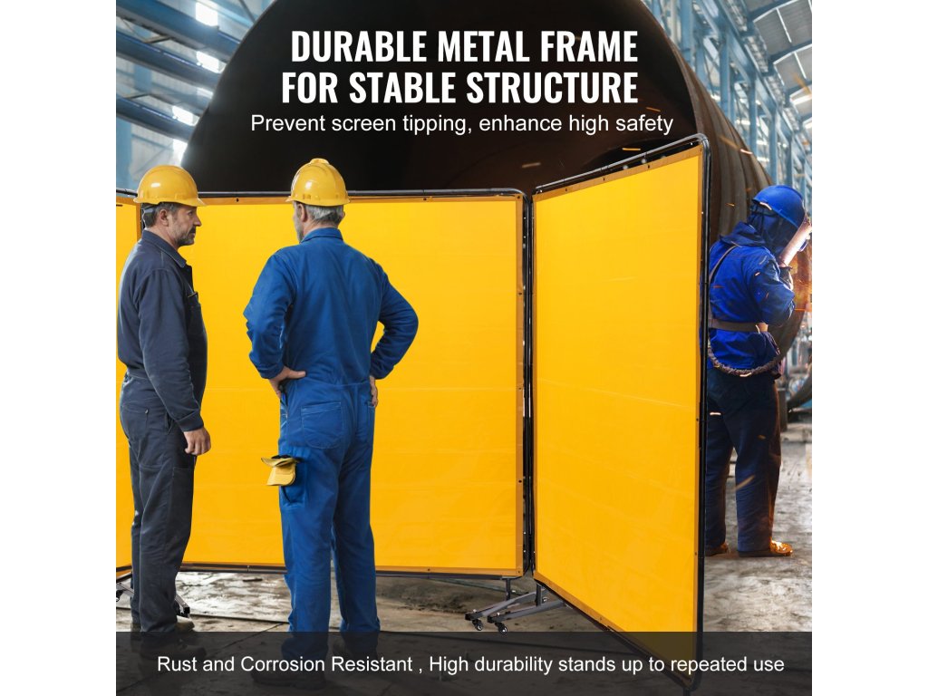 Készen áll arra, hogy a hegesztés biztonságát a következő szintre emelje? Ne keressen tovább! A VEVOR 3 paneles 6 x 6 FT hegesztési kötény kerettel itt van, hogy kiváló lángállóságot, 6 fokozatú UV-védelmet, stabil keretet és 12 görgőt kínáljon, amelyek 360°-ban forgathatók, így tökéletes társ a biztonságos munkaterülethez.