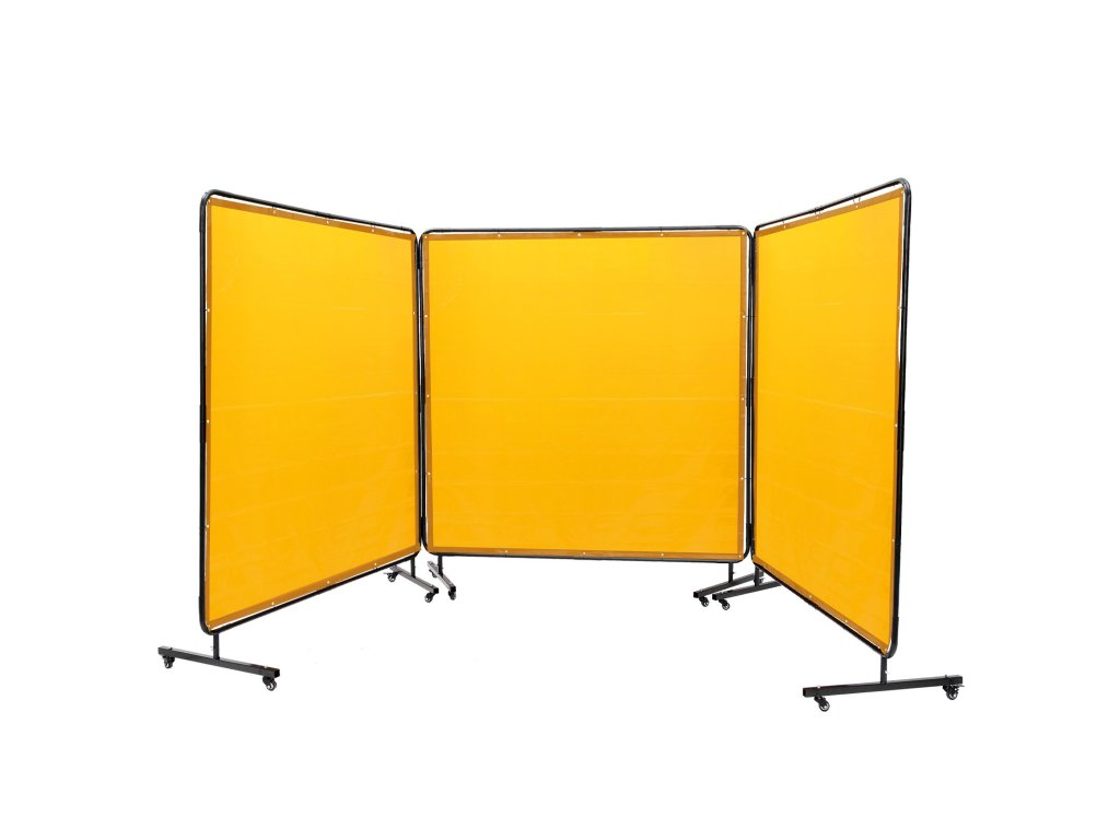 Hegesztőernyő kerettel, 3 panel, 6'×6', lángálló vinil, 12 kerékkel