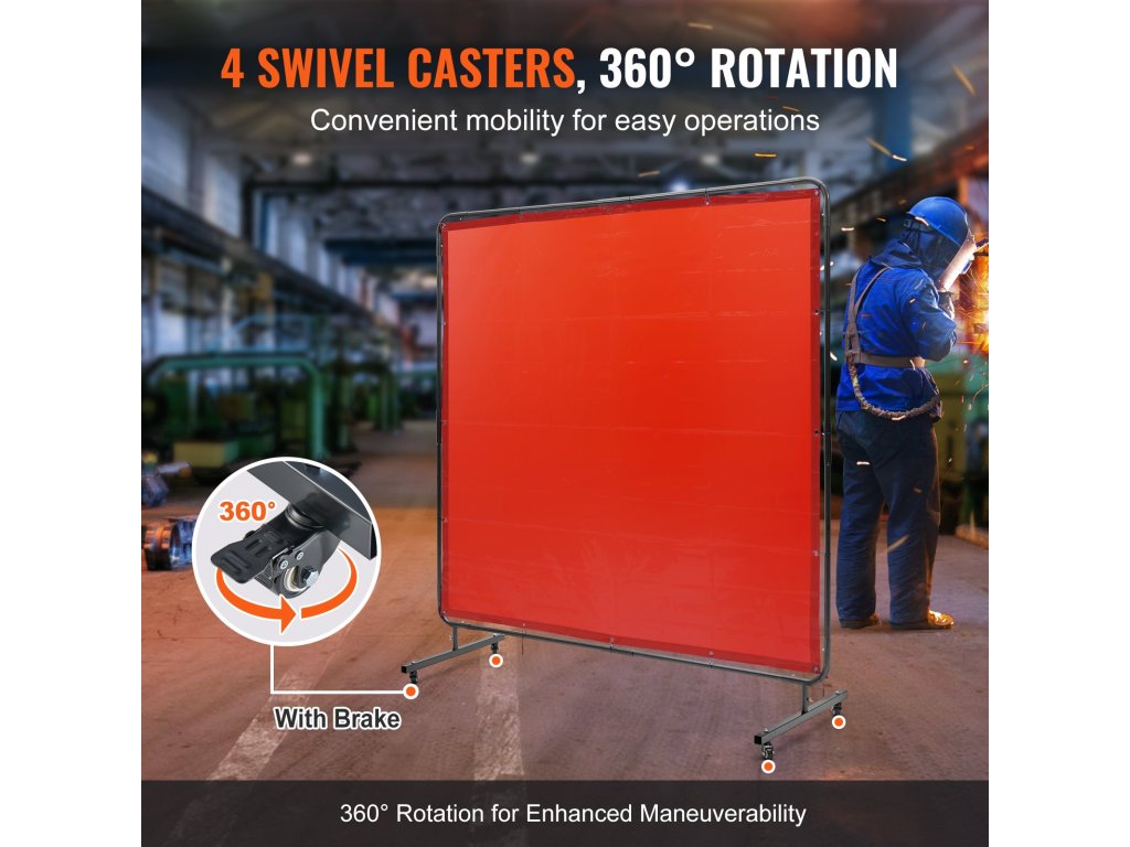 A 4 kerekes forgó kialakításnak köszönhetően könnyedén elérheti a hegesztővászon 360°-os forgási mozgékonyságát, míg a 2 fékkel ellátott kerék szükség esetén stabil parkolást biztosít. Nem kell többé aggódnia a vászon elhelyezése miatt, így a hegesztési műveletek kényelmesebbé válnak.