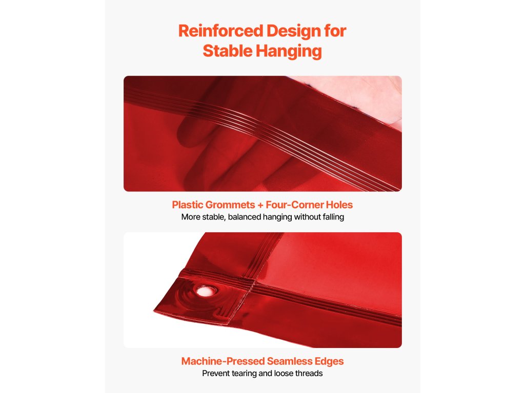 Minden biztonsági hegesztőernyőt 18 műanyag tömítéssel szállítunk a gyors felszerelés és a biztonságos, kiegyensúlyozott felfüggesztés érdekében. A varrat nélküli, gépi öntött élek megerősített szilárdságot biztosítanak, amely megakadályozza a szakadást és a sérüléseket a kiváló tartósság érdekében.