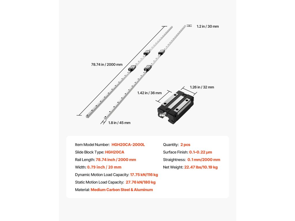 | Dĺžka koľajnice | 78,74 palca/2000 mm |
