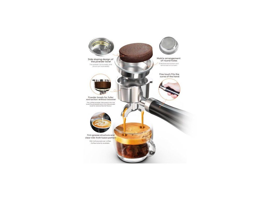 A kávéextrakciós nyomás lehetővé teszi, hogy a gőz könnyen és egyenletesen behatoljon a kávéporba, és finom kávéhabot kapjon.