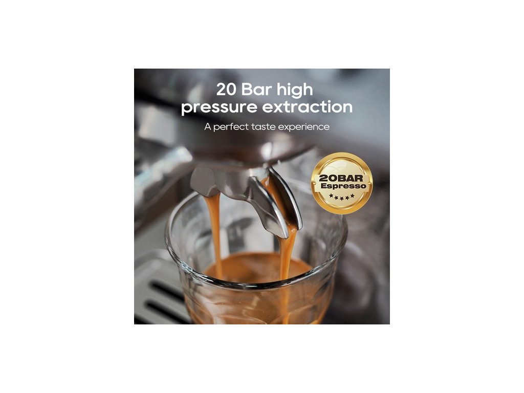 | Specifikáció | Névleges teljesítmény: 1350W Szivattyúnyomás: 20 Bar Névleges feszültség: AC 220-240V 50Hz/60Hz Víztartály: 1.8L Funkciók: kávéfőző: eszpresszó, tejhabosító, csészemelegítő Kávé típusa: porított Fűtőelem: fűtési idő: 1 perc: 35 másodperc |
