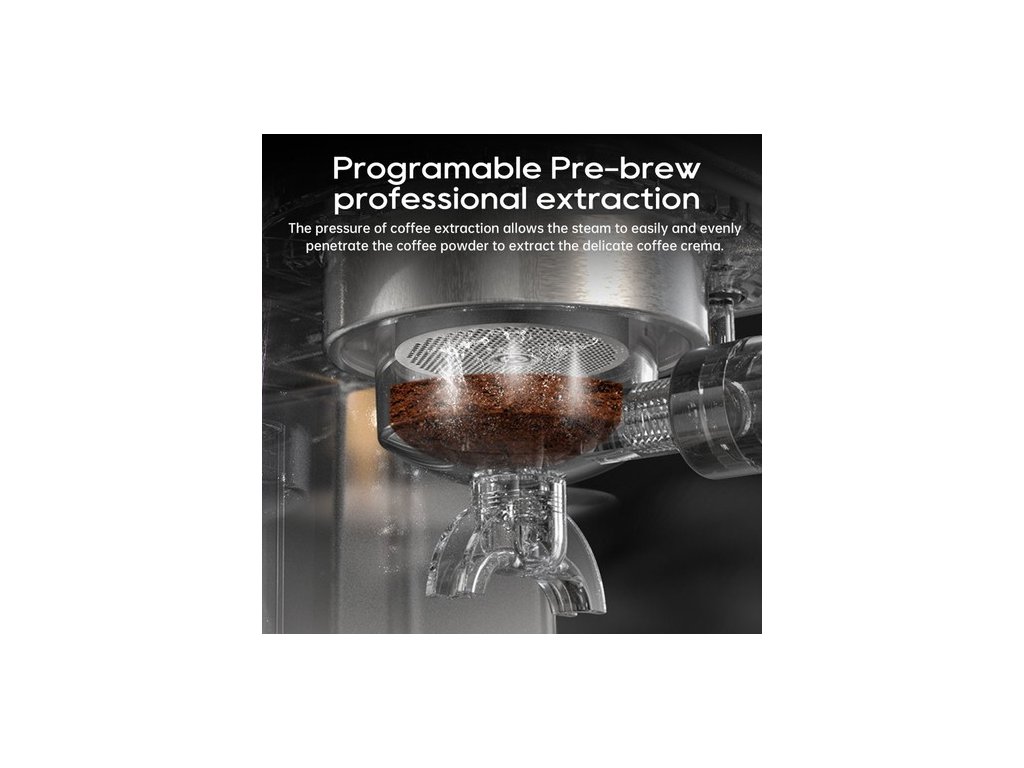 Ez a félautomata kávéfőző képes beállítani a kávé mennyiségét, az extrakciós hőmérsékletet, a gőz hőmérsékletét és az előgőzölési időt. A gazdag programozási funkciók segítségével beállíthatja az Önnek megfelelő kávé savasságát és keserűségét. Még a különböző ízű kávébabok esetében is segít ez a programozható kávéfőző az ízük kivonásában.
