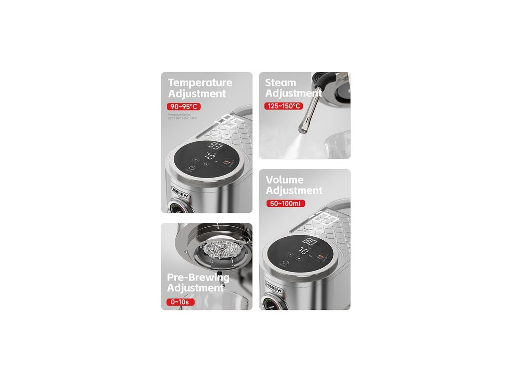 - Fejlett testreszabás: Állítsa be a forráshőmérsékletet, a vízmennyiséget, az előfőzési időt, és mentse el a felhasználói beállításokat kedvenc italaihoz.