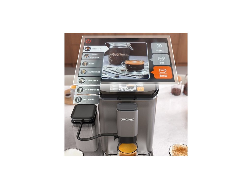A HiBREW H16 kávégép barista minőségű kávét készít professzionális extrakcióval, 20 bar nyomáson, gazdag habot és testes ízt garantálva. Beépített rozsdamentes acél kúpos őrlője 15 állítható fokozatot kínál az Ön által preferált pörkölési intenzitáshoz.