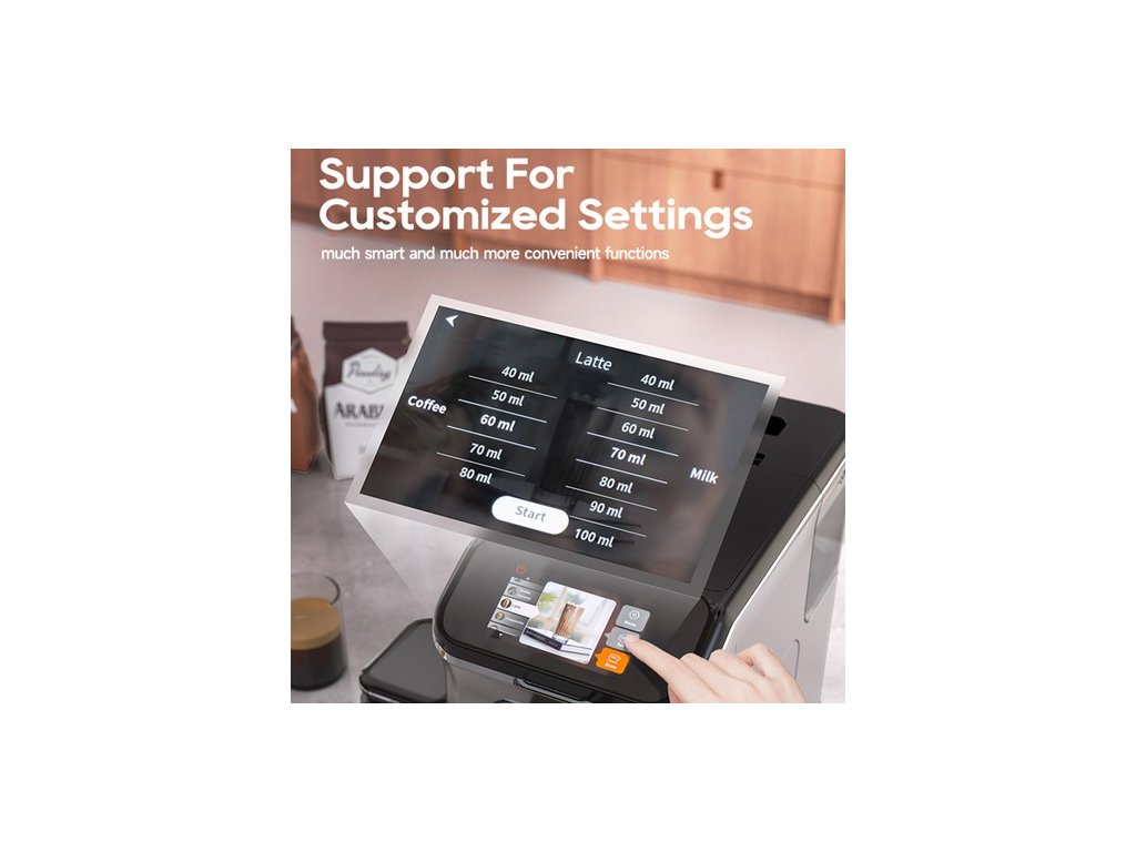 4,3"-os érintőképernyő: intuitív kezelőfelület a tejhab erősségének, hőmérsékletének és sűrűségének beállításához.