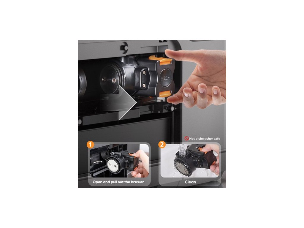 Könnyű karbantartás: A kivehető csepegtető tálca, a víztartály és a főzőcsoport megkönnyíti a tisztítást.