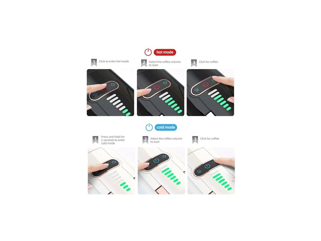 A kapszulás eszpresszógép hideg vagy forró kávé üzemmóddal rendelkezik, így nyáron jeges kávét, télen pedig forró kávét készíthet. (A HOT üzemmód körülbelül 35 másodperces előmelegítést igényel).