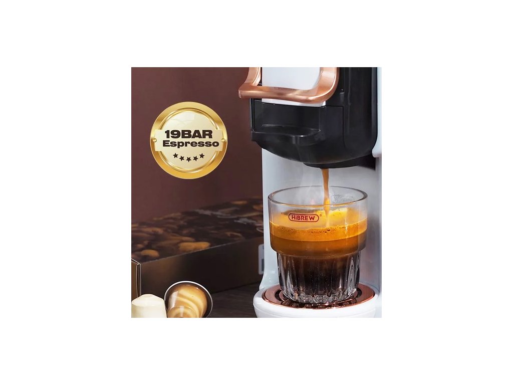 A HiBREW kapszulás kávéfőző nagynyomású szivattyúval és spirálfűtési technológiával rendelkezik, amely 19 bar teljesítményt és körülbelül 161,6℉ fűtési teljesítményt biztosít. A stabil nyomás biztosítja a kiváló minőségű extrakciót a kávékapszulából/porból, így minden főzéskor gazdag habbal rendelkező eszpresszót élvezhet.