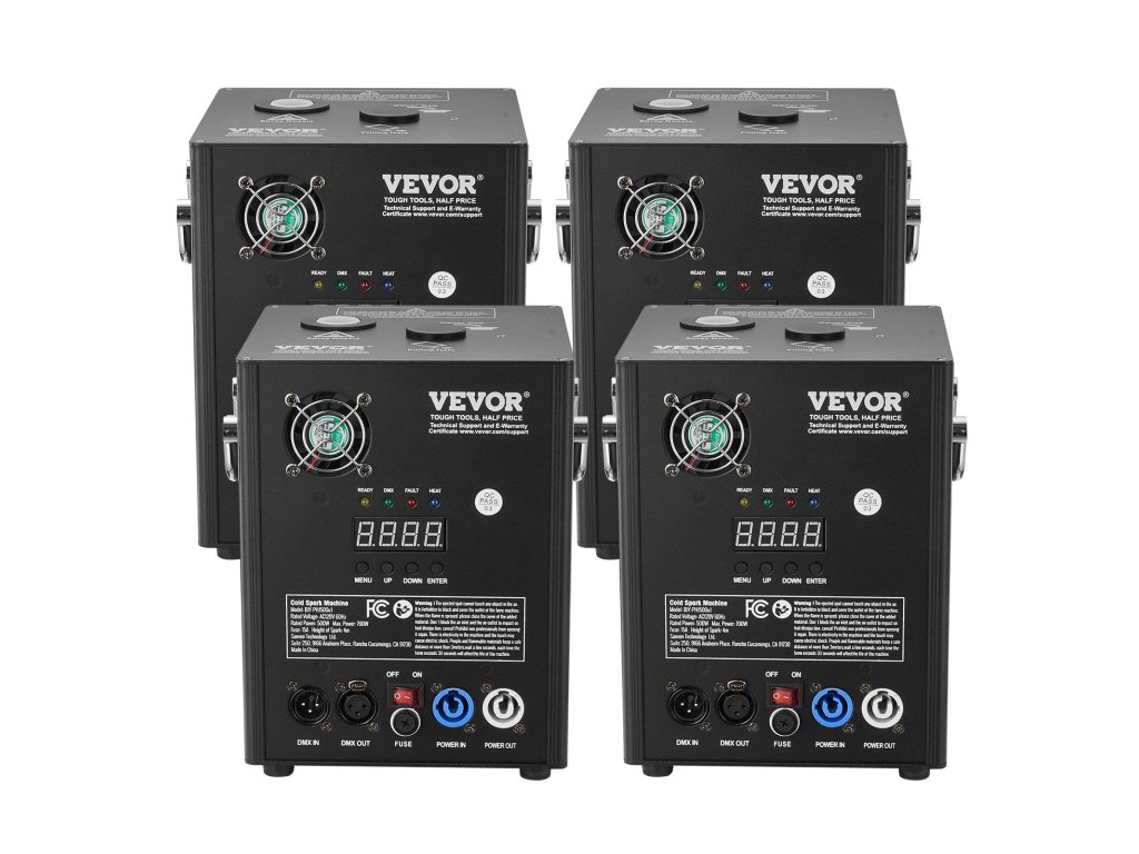 Hidegszikra generátor 4×500W, állítható 2,5–4,3 m, DMX, LED