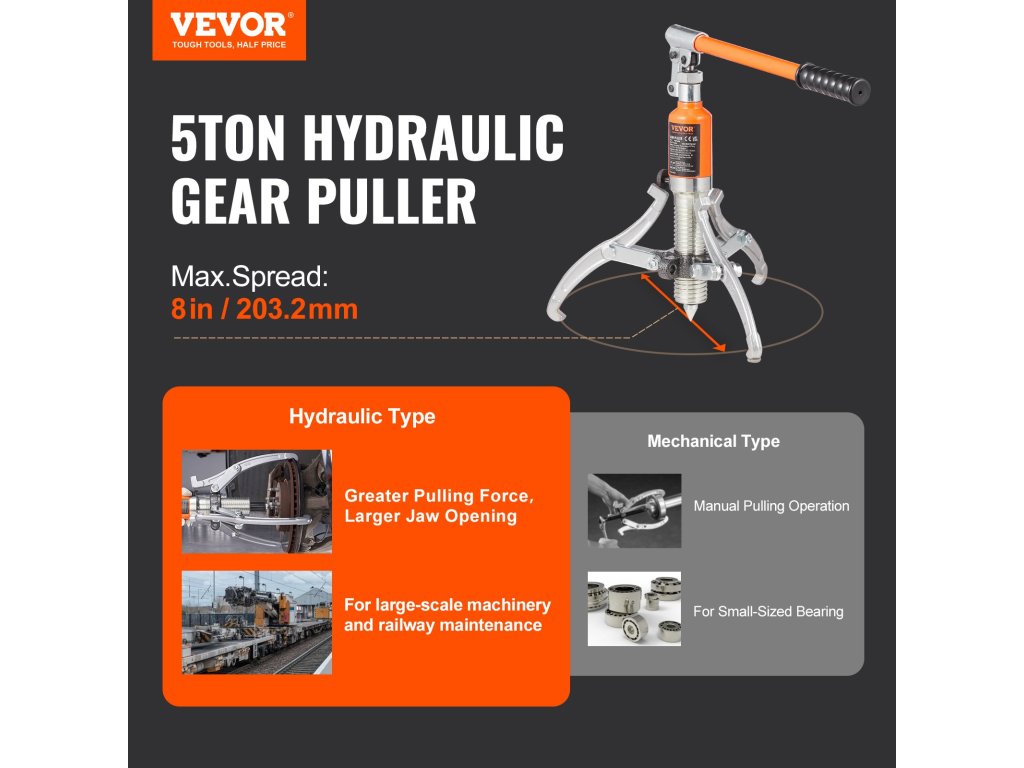 Az 5T hidraulikus fogaskerékhúzó sokoldalúan alkalmazható különféle feladatokhoz, például gépkarbantartáshoz, csapágyak eltávolításához, fogaskerekek eltávolításához, szíjcsigák, vasúti/hajó karbantartásához és bányászati berendezések karbantartásához.