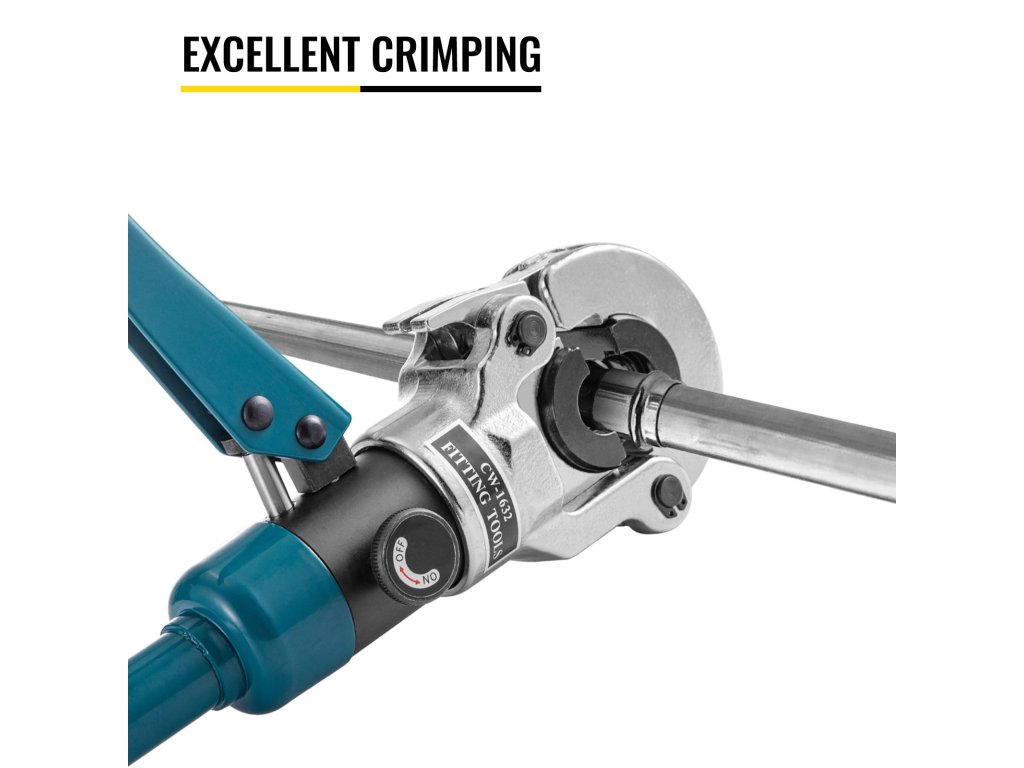 A hidraulikus sajtoló fogók kiváló minőségű 40CR acélból készültek, lyukasztási és kovácsolási eljárással és porbevonattal. Egyszerű kétkezes működtetés, biztonságos krimpelés másodpercek alatt, nagyszerű csőszerelvényekhez.